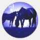 Silhouettes de caballos y luna en noche azul - Silhouettes de caballo en caballos de arte nocturno / pop - Animales de granja / Caballos Arte Pop digital
