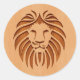 Pegatina Redonda Cabeza de león grabada en diseño de madera