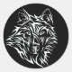 Pegatina Redonda Cabeza de lobo blanco en negro