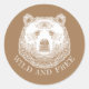 Pegatina Redonda Cabeza De Oso, Silvestre Y Libre, Ilustracion Derr
