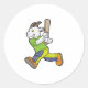 Pegatina Redonda Cabra como bateador con bate de críquet