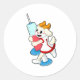 Pegatina Redonda Cabra como enfermera en la vacunación con jeringas