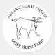 Sencilla etiqueta de producto de granja lechera de queso de cabra ecológica fresca, en blanco y negro, con detalles de negocios. Fácil de personalizar la escritura a mano con tipografía moderna usando la plantilla. Ideal para empresas agrícolas y pequeñas explotaciones. Dibujo minimalista de una linea de cabra original único obra de la artista Catherine Sweetman