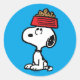 Pegatina Redonda Cacahuetes | Snoopy Balanceando Su Plato De Perro