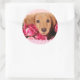 Pegatina Redonda Cachorro de Dachshund rodeado de Rosas