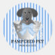 Perro cachorro lindo en un pail que se baña. Los Pegatinas de Diseño Azul son una excelente manera de promocionar su negocio en facturas y correo saliente. Añade este lindo pegatina a todos los recibos pagados. Su cliente tendrá su número de negocio cerca.