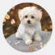 Pegatina Redonda Cachorro maltés, qué lindo.