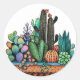 Pegatina Redonda Cactus Garden Cute Watercolor En Pot