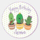 Pegatina Redonda Cactus gracioso trío ilustracion personalizado