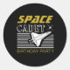 Pegatina Redonda Cadete espacial, naves espaciales, cumpleaños