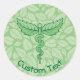 Ceguera soltera caduceus con hojas de menta sobre fondo verde claro y sin costura. Texto personalizado.