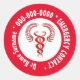 Pegatina Redonda caduceus rojo en blanco con contacto de emergencia