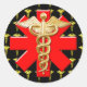 Pegatina Redonda Caducto De Oro Y Cruz Médica