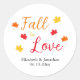 Regalos de eventos de personalizado de caída en el amor con paleta de color rojo, naranja y amarillo otoño con hojas de arce. El texto se puede personalizar para un boda, una ducha de novia, una ducha de bebé o cualquier otro evento
