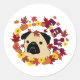 Pegatina Redonda Caer Pug con hojas, calabazas y girasoles