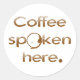 ¡Usa tu adicción a la cafeína con orgullo! El diseño proclama "Café hablado aquí" con un gran anillo de café en medio. Mocha, java, latte, espresso, capuchino - sin importar cómo lo llames, ¡hablas el idioma! Perfecto para su uso en la cafetería, el dormitorio o el sofá de la TV.