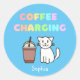 Pegatina Redonda Café lindo blanco para gato y divertido café cafeí