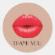 Una imagen de arte pop de brillantes labios de crimson rojos que se tambalean para un beso contra un fondo de color café. Este diseño está inspirado en el arte pop, el arte moderno, el arte gráfico, la cultura hipster y seguramente será una declaración. Perfecto para un pegatina de Gracias.
