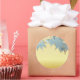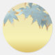 Este pegatina redondo festivo y de colores brillantes presenta una hermosa imagen fotográfica de las hojas de un árbol de arce japonés que se vuelve marrón rojizo a principios de otoño en el jardín japonés del parque Hermann, Houston. Los colores de las hojas han sido realzados digitalmente y tintados un fresco color ceruleano verde azulado azul congelado. Los colores primarios de las hojas son azules esmerilados con toques de bronce amarillo y rojizo en los bordes de las hojas. Los colores son frescos y casi pastel. El diseño de este elegante y moda pegatina tiene las hojas de arce en la parte superior como un baldaquín con mucho espacio debajo para la personalización con un saludo o un nombre. El color de fondo de este elegante pegatina es un oro no metálico, que puede ser sustituido por su propia foto, obra de arte, nombre o monograma. Este hermoso pegatina complementa una amplia gama de artículos de papelería temática Fall para una ocasión especial o celebraciones de vacaciones.
