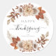 Pegatina Redonda Caída Rústica deja feliz Día de Acción de Gracias