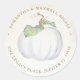 Las focas con temática única de otoño redondeada completan su fiesta rústico de calabaza blanca o su tema boda. Personalice con sus nombres y fecha de boda y utilice como etiquetas de preferencia en cajas pequeñas. También es una elección botánica y elegante para un pegatina de dirección de regreso para invitaciones de bodas de otoño y sellos para sobres de Acción de Gracias. Para ver más diseños, visite www.zazzle.com/vginvites