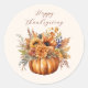 Pegatina Redonda Calabaza con flores - Feliz Día de Gracias