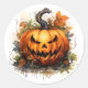 Pegatina Redonda Calabaza Creepy Jack-O-Lantern