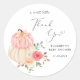 Un pegatina muy simpático para su fiesta de duchas de bebé favorece la presentación de "A Sweet Little Gracias" en una mezcla de tipografía gris simple y un guión elegante con un toque cardíaco y una acuarela de calabazas y flores de color rosa pastel y melocotón.