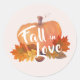 Pegatina Redonda Calabaza de enamorarse Hojas de otoño Rosa rubor