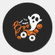 Pegatina Redonda Calabaza de Halloween montada en un camión fantasm
