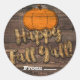 Pegatina Redonda Calabaza de Madera Rústica Feliz Otoño Amigos Favo