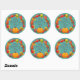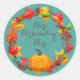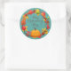 Pegatina Redonda Calabaza de otoño hoja de flores naranja verde azu