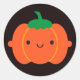 Una feliz calabaza kawaii para Halloween con un espeluznante fondo negro.