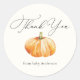 Pegatina de agradecimiento con calabaza naranja. Ideal para una boda o baby shower. Personaliza con tu información o haz clic en "Haz clic para personalizar aún más" para editar estilos de fuente, tamaño y colores.