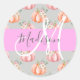 Pegatina redondo clásico monocrático de monorgrama giratorio con calabazas de color rosa y melocotón floral primavera / otoño y fondo gris. Su nombre y monograma personalizados están escritos en un elegante guión gris y blanco con letras a mano con un fondo rosado. Puede cambiar el color del texto y el estilo y el tamaño del tipo de letra mediante la opción personalizar.