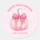 Pegatina Redonda Calabaza rosada doblar Feliz Halloween personaliza