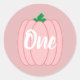 Pegatina Redonda Calabaza Rosada Primer Cumpleaños