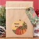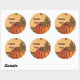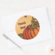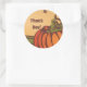 Pegatina Redonda Calabaza solitaria en el campo. Caen las hojas del