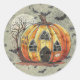 Pegatina Redonda Calabazas espeluznantes con murciélagos