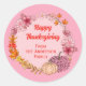 Este es un hermoso pegatina con temática de otoño con una corona de calabazas, flores y hojas en divertidos tonos rosa y naranja. Este pegatina puede ser personalizado con su propio texto para que pueda ser utilizado para una variedad de eventos de caída.