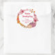 Este es un hermoso pegatina con temática de otoño con una corona de calabazas, flores y hojas en divertidos tonos rosa y naranja. Este pegatina puede ser personalizado con su propio texto para que pueda ser utilizado para una variedad de eventos de caída.