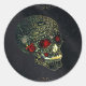 Pegatina Redonda Calavera araña y Rosas Glam Fiesta gótico