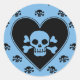 Un cráneo azul y unos huesos cruzados dentro de un corazón negro. Perfecto para un El día de San Valentín con temática gótica o pirata.