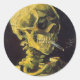 Pegatina Redonda Calavera con cigarrillo en llamas