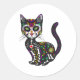 Pegatina Redonda Calavera De Azúcar Cato Mexicano Halloween Día Del