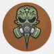Pegatina Redonda Calavera de azúcar de máscara de gas, verde