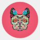 Pegatina Redonda Calavera de azúcar Frenchie - Rosa