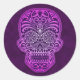 Pegatina Redonda Calavera de azúcar morado intrincada