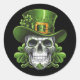 Pegatina Redonda Calavera de azúcar St Patrick's Day Shamrock