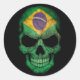 Pegatina Redonda Calavera de bandera brasileña en negro